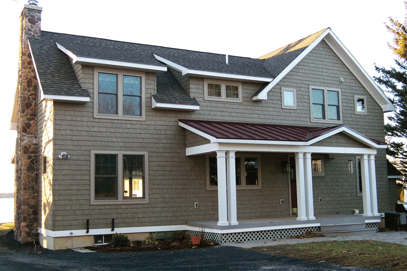 - Completed in 2007, this 3400 square foot Craftsman style home features cedar shingle vinyl siding, cultured stone chimney, architectural roof shingles and standing seam steel roofs over the rear open porch and the front screen porch.